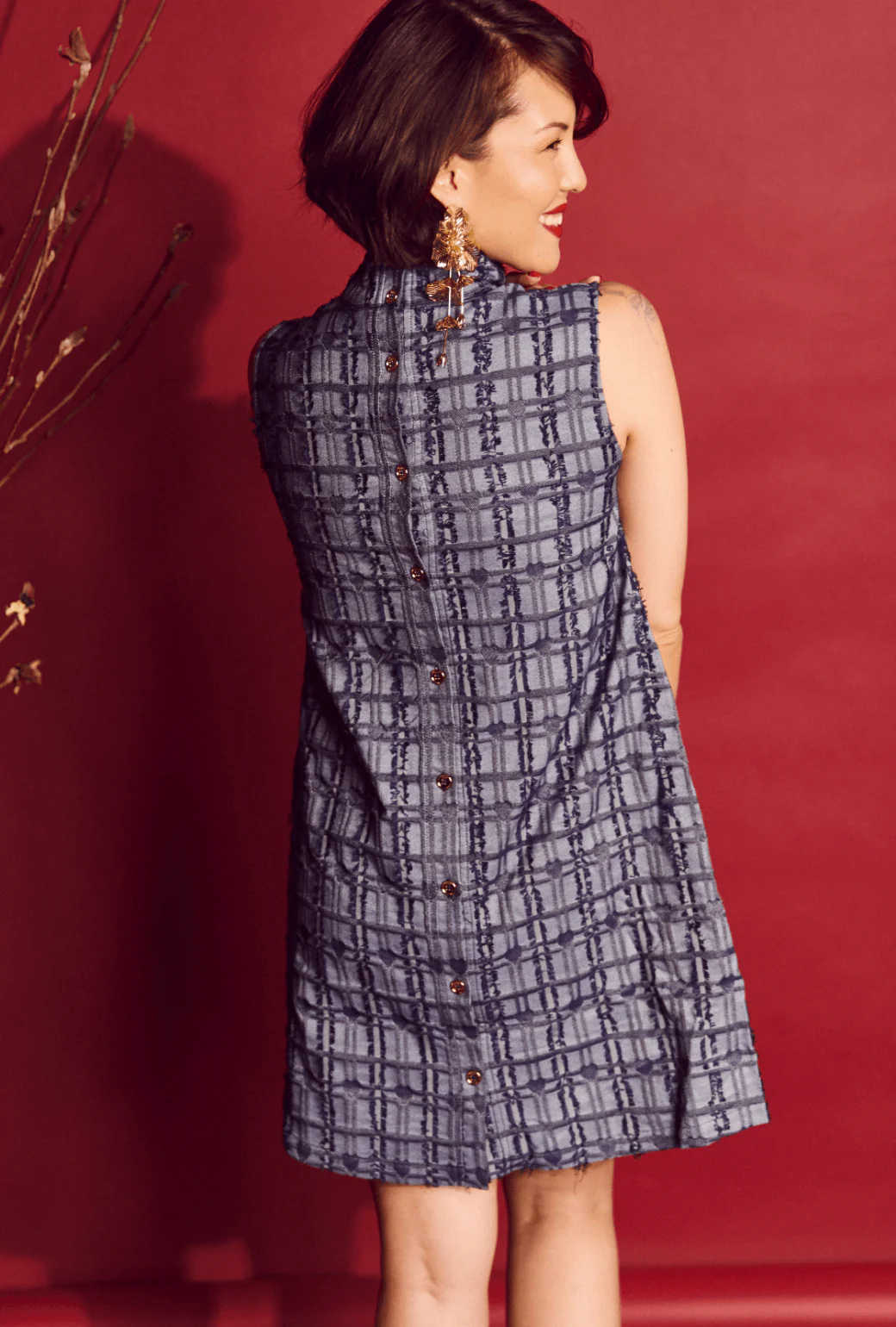 Nothing says retro glam like a classic shift dress. Modeled after our best-selling "Mod Top", the "Mod Dress" is the mini dress you've been looking for. Showing leg while remaining sophisticatedly covered with a mock turtleneck, this number is as comfortable as it is cute. In an indigo heart fabric, this fresh take on a denim dress will take you from season to season. Style her with her matching Boyfriend Blazer or Le Culottes.